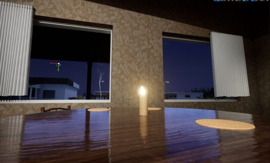 Because my time was limited, I did not want to spend too much time on the environment, so after completing building it to level enough for my walkthrough, I focused on light and vfxs, I did however continue to add assets in the meantime. Because of it, I also could not dress the house exactly how I wanted to, but I found a way around it and added a few boxes and a few things in a mess, giving an impression the owners just moved in, which justified the emptiness. All of the assets come from either Quixel Bridge or Sketchfab.