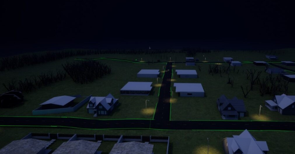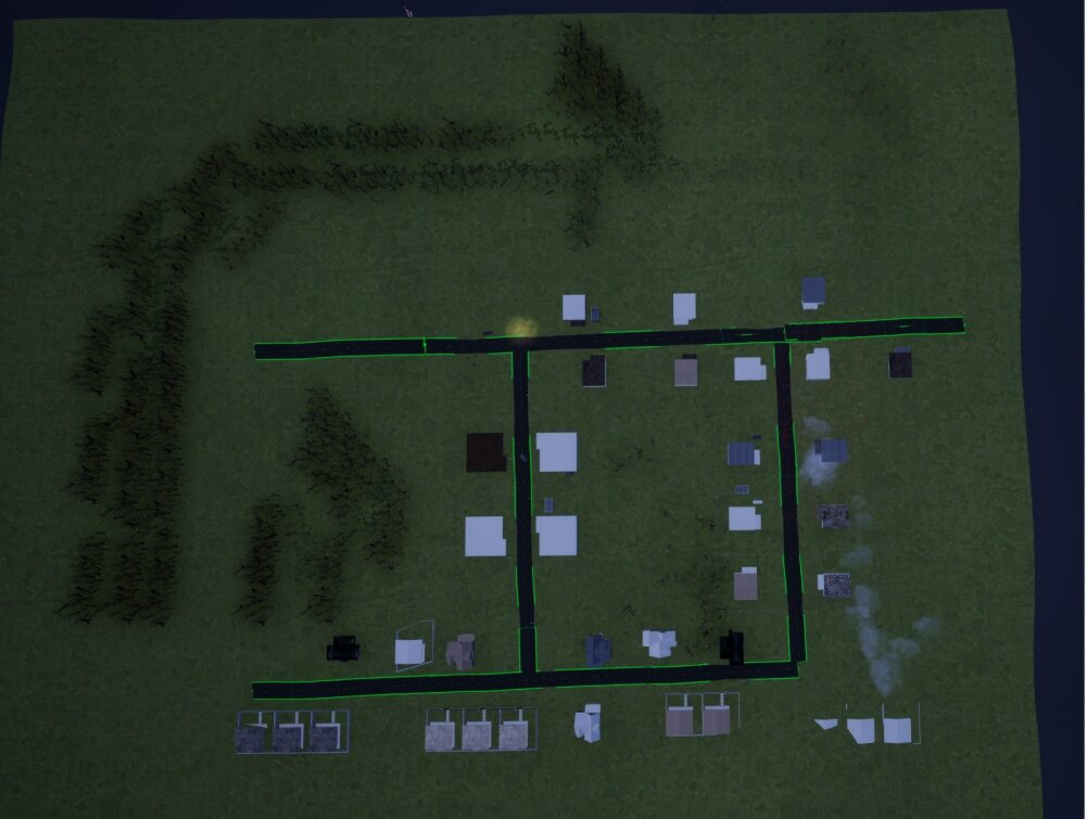 I started my project in 3rd person view and created a grass field. Then, using Spline option in landscape, I created a road. I then started to look for assets, however I quickly realized that Suburbs are actually not that popular and it was much easier to find things related to Trailer Parks and I decided to slightly change my idea. At this point, I was not yet very skilled at finding free assets, however I found a few basic buildings. Although I was hoping to find something more detailed, it actually turned out quite well, as it gave me a freedom to customise them.
