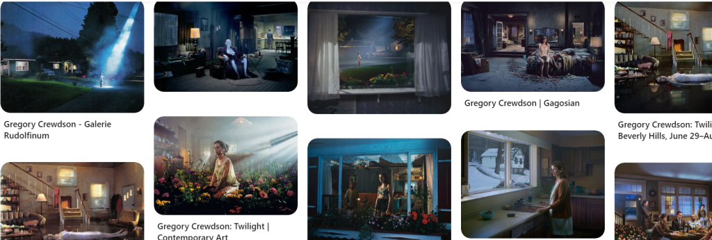 The other one was Gregory Crewdson, who has been one of my favourite photographers for years. I was always impressed with his use of light as well as simple, everyday settings, to create an extremely eerie effect.